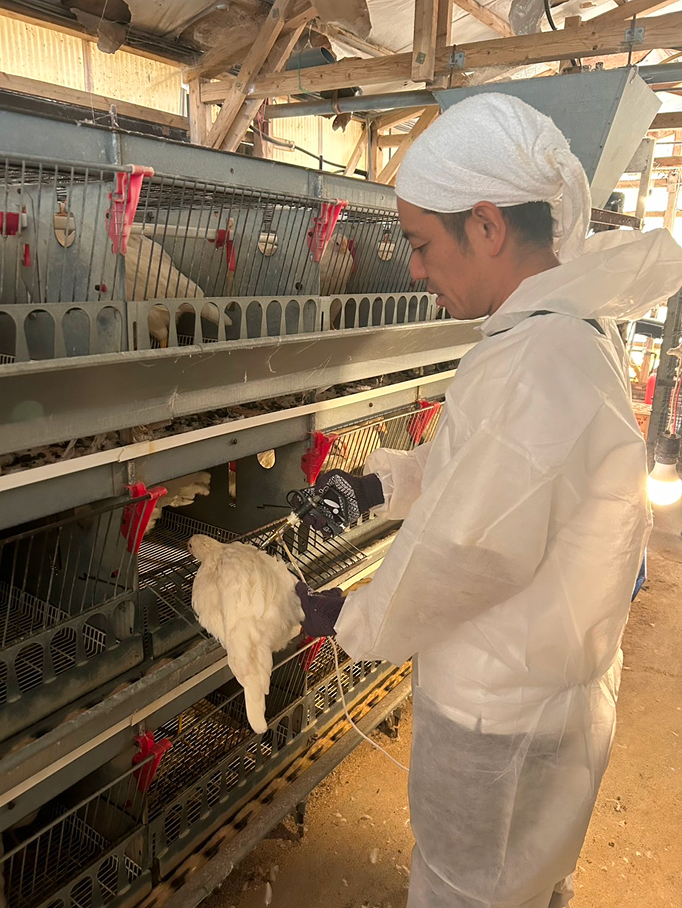 養鶏所でのワクチン接種の様子