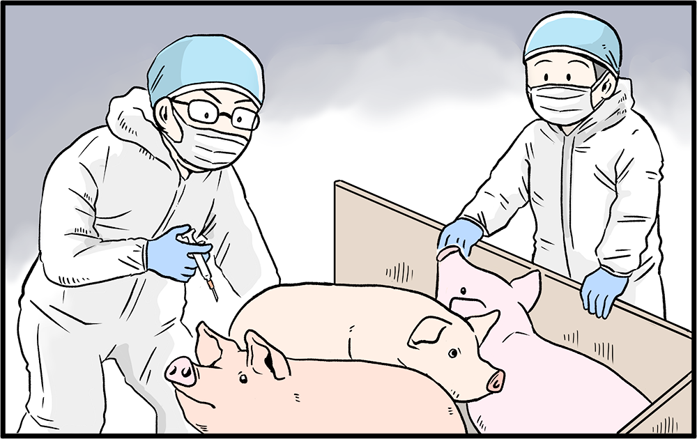まず、「家畜衛生」分野では、口蹄疫、豚熱、高病原性鳥インフルエンザといった家畜伝染病対策が重要な仕事になります。各都道府県にある家畜保健衛生所で働く獣医師は、家畜の伝染病予防とまん延防止に努めています。また、農林水産省は、全国の港や空港で獣医師などによる動物検疫により、家畜伝染病の侵入を水際で防いでいます。