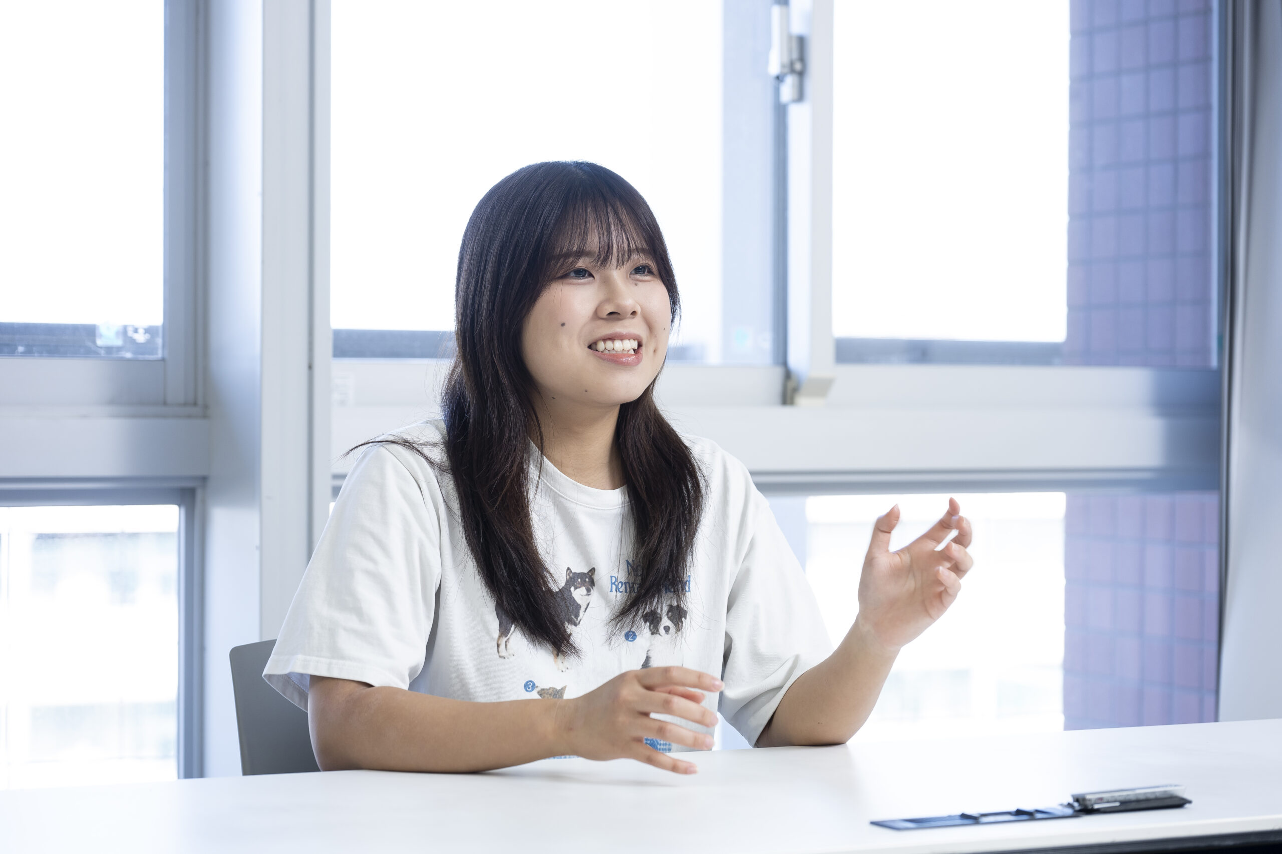 「産業動物内科学研究室」に所属し、牛の臨床全般を学んでいます。実習を通じて、病気で弱っていた牛が治療によって回復し、立てるようになる姿を見ると、命の大切さと獣医師の仕事のやりがいを感じます。現在は、牛の肺炎の治療法など、さまざまな疾患について研究しています。