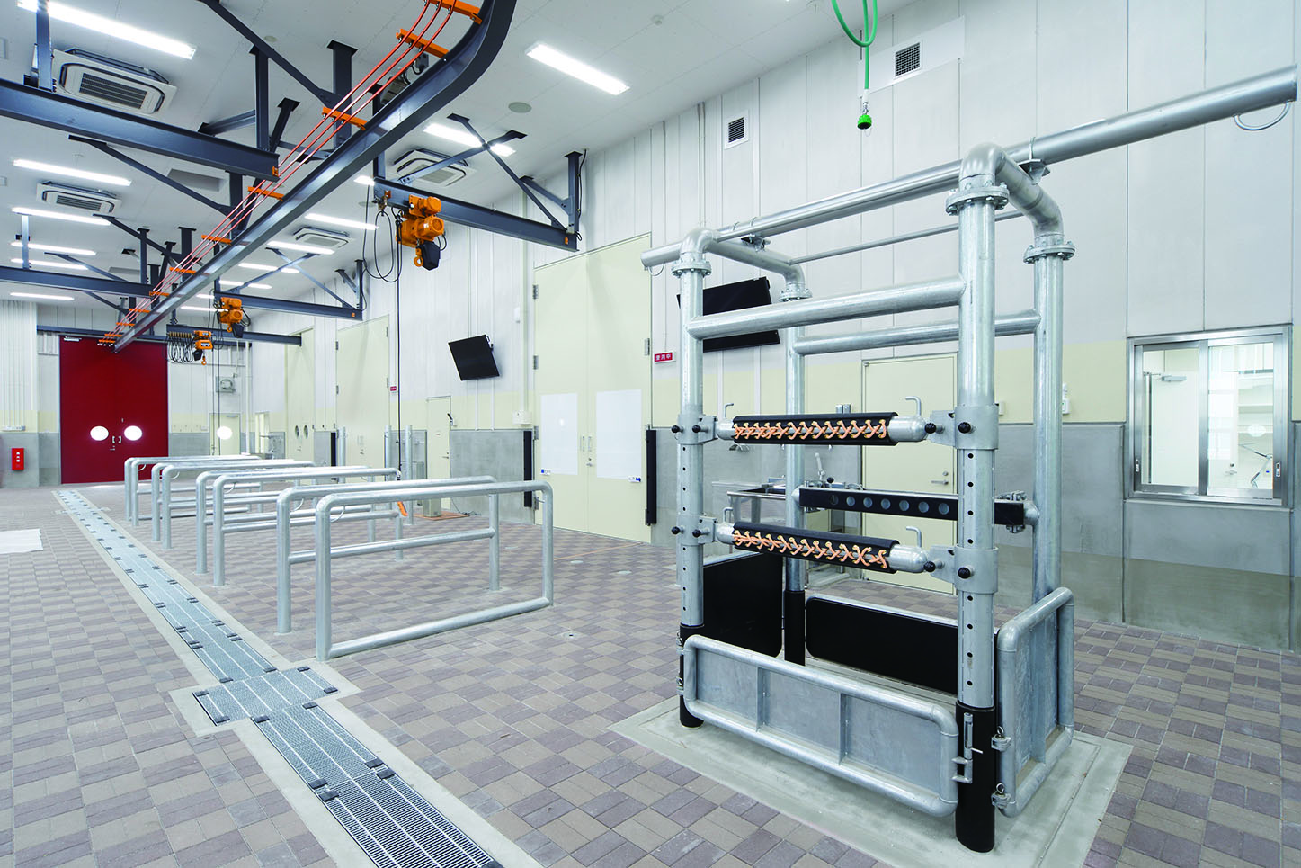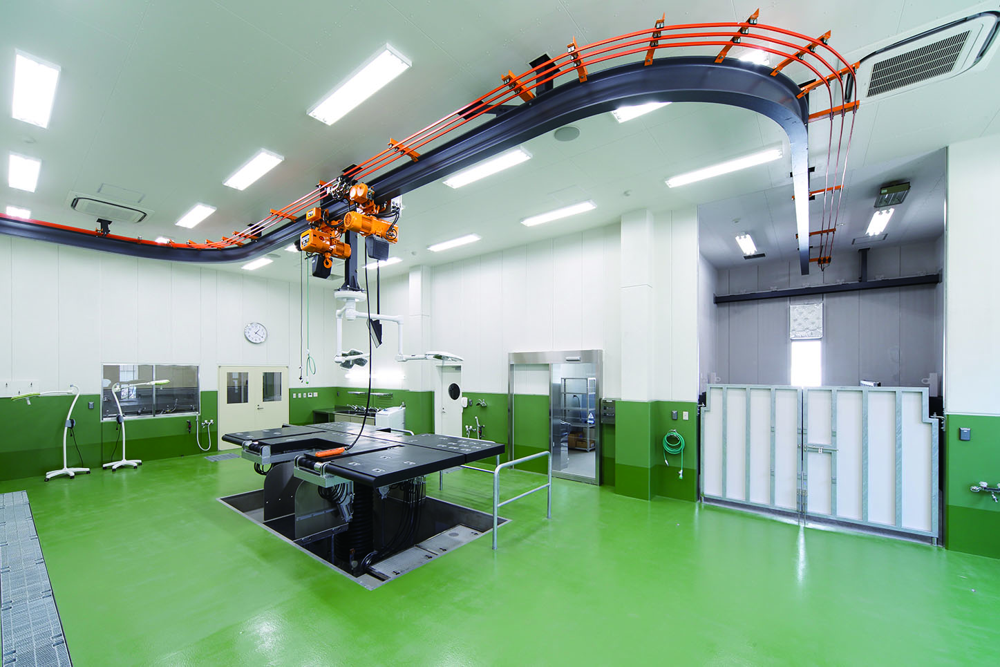 牛や馬などの大型動物の検査や診療を学ぶ上で欠かせない設備が、キャンパス内にある産業動物臨床教育センター(LAVEC)です。ここには、800㎏オーバーの大型動物を保定できる手術台、電動式天井クレーン、大型CTスキャンなど、産業動物獣医師として活躍するために欠かせない最先端の医療機器がそろっています。LAVECは、学内にある動物医療センターの二次診療施設にもなっており、実際の牛や馬の手術を学生が見学できる機会もあります。