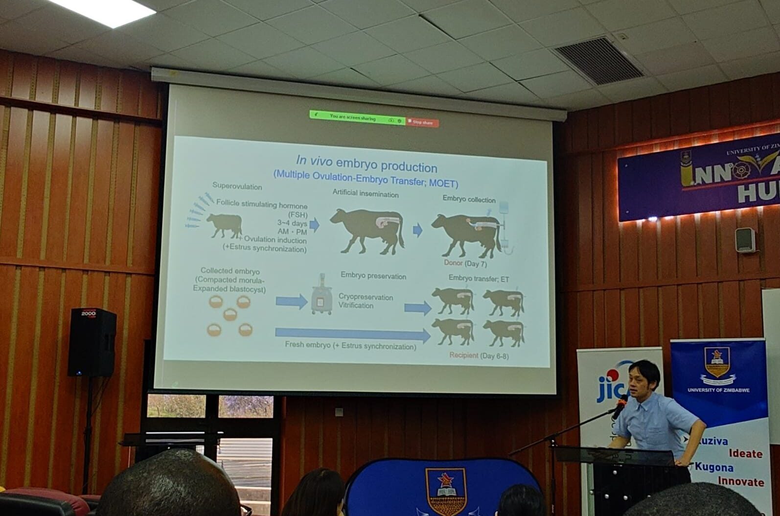 担当する「獣医臨床繁殖学研究室」では、繁殖学、特に牛の受精卵移植技術について研究しています。これは、優秀な牛や価値の高い牛の受精卵を他の牛に移植することで、代理母出産により子牛を得ることができる技術です。現在は、体外受精による「体外胚生産」が世界的に広く用いられています。日本においては、黒毛和種の受精卵をホルスタイン種などの乳牛に移植して、子牛を生産(代理母出産)する取り組みが積極的に進められており、酪農家の重要な収入源になっています。しかし、その割合は未だに限定的で、乳牛由来の和牛子牛の割合は、11%程度に留まっています。私はこれを100%に近づけたいと考えています。